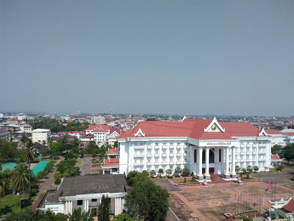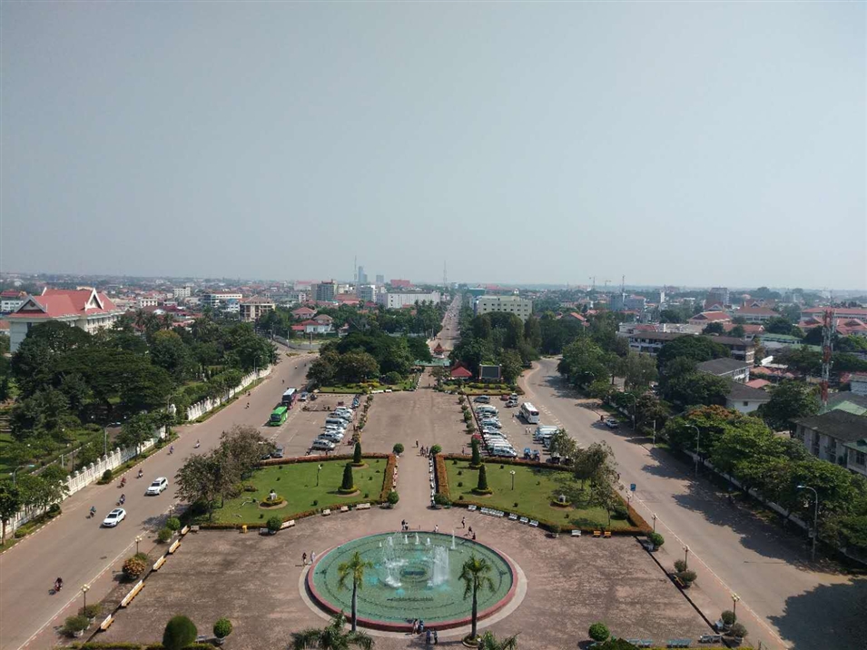 老撾凱旋門上眺望萬象市