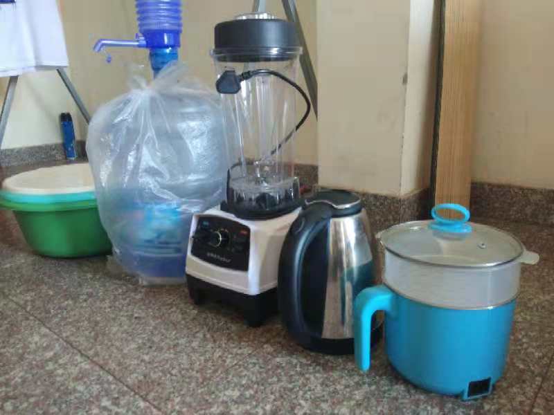 嘿嘿,看看我拍到了什么?榨汁機(jī)!沒(méi)錯(cuò),我們宿舍是不限電不斷網(wǎng)的,每一次聽(tīng)國(guó)內(nèi)的朋友抱怨他們學(xué)校禁止使用大功率電器,一到12點(diǎn)就斷網(wǎng)的時(shí)候,我就暗自竊喜。