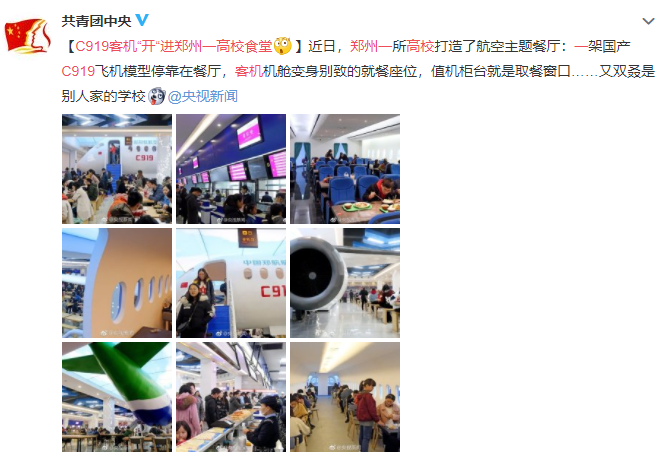 前段時間,微博@共青團(tuán)中央分享的一則“C919客機(jī)‘開’進(jìn)鄭州一高校食堂”的消息引起網(wǎng)友熱議,評論精彩紛呈。