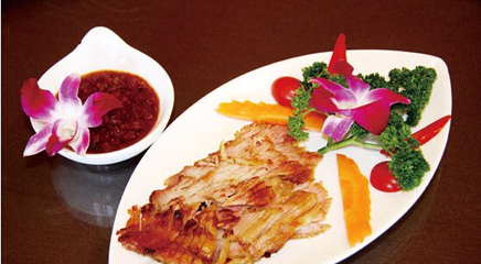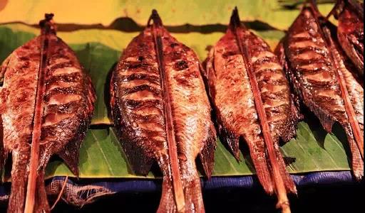 老撾多河流,自然產(chǎn)好魚(yú),這里的魚(yú)個(gè)大柔嫩還鮮美多汁。當(dāng)?shù)厝俗钕矚g將這種扁魚(yú)烤著吃。而且烤的方法很獨(dú)特,把魚(yú)內(nèi)臟去凈后塞上一把新鮮的檸檬草。不但去腥,還讓魚(yú)平添一份檸檬的清香。最地道的老撾烤魚(yú)吃法是用生的綠菜葉子包裹著涼米粉、生茄子和蘸著調(diào)料的魚(yú)肉包一個(gè)大包,一口吞到嘴里,非常鮮嫩爽口。