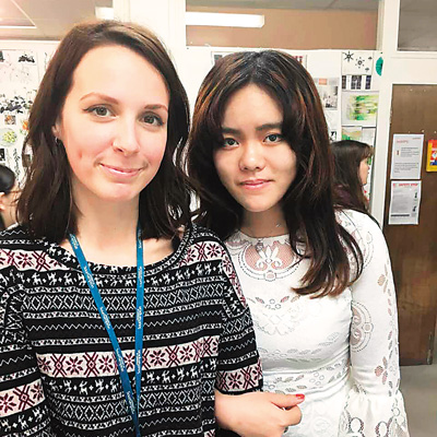 在英國的學(xué)習(xí)經(jīng)歷提升了王青瑜分配時(shí)間和自主學(xué)習(xí)能力。圖為王青瑜(右)和留學(xué)時(shí)的老師合影。
