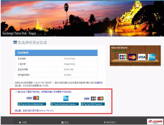 簽證費(fèi)支付頁面;如何支付,不解釋;這個也不會的話,就找東南亞e生活代辦吧~