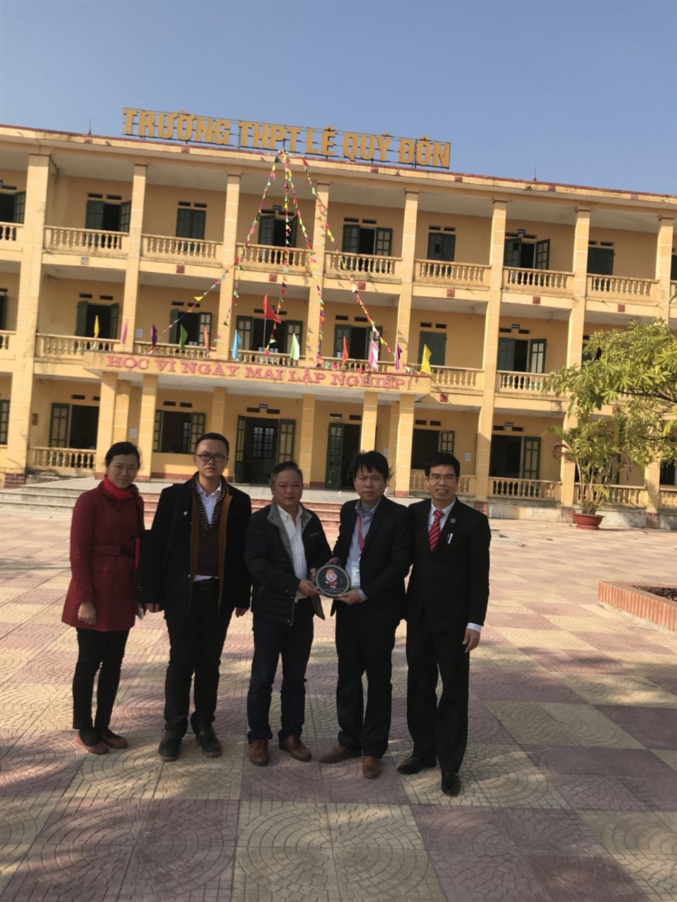 (我司國(guó)際合伙人贈(zèng)與黎貴墩私立中學(xué)的副經(jīng)理黃英先生我司形象金小沛吉祥物