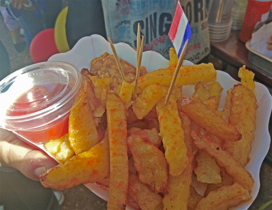 這是一場(chǎng)以各國(guó)美食為媒介的文化互動(dòng),文學(xué)院各系的學(xué)生在美食活動(dòng)現(xiàn)場(chǎng)展示了日本、中國(guó)、老撾、韓國(guó)、法國(guó)歐、亞兩州不同國(guó)家的美食,比如中國(guó)的燒仙草、法國(guó)的薯?xiàng)l、老撾的肉串等,老撾國(guó)立大學(xué)的學(xué)生在暢享美食之際也在進(jìn)行飲食文化的分享與交流。