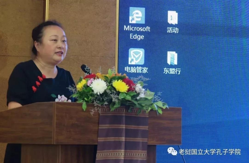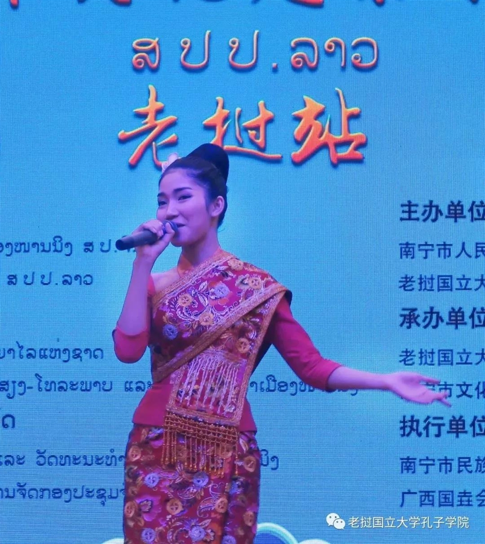 老撾國立大學(xué)孔子學(xué)院老方院長阮瑋蕾致歡迎辭。她表示老中是全面戰(zhàn)略合作伙伴關(guān)系,是人類命運(yùn)共同體,老撾和廣西經(jīng)濟(jì)文化交流非常密切,壯族文化與老撾民族文化相似相通,感覺就好像一家人一樣。她說“我們要構(gòu)建長效合作機(jī)制,共同推動(dòng)老中兩國人民之間的友好往來與合作,推動(dòng)中老民間傳統(tǒng)文化藝術(shù)的廣泛交流,共同提升文化交流的品質(zhì)。”