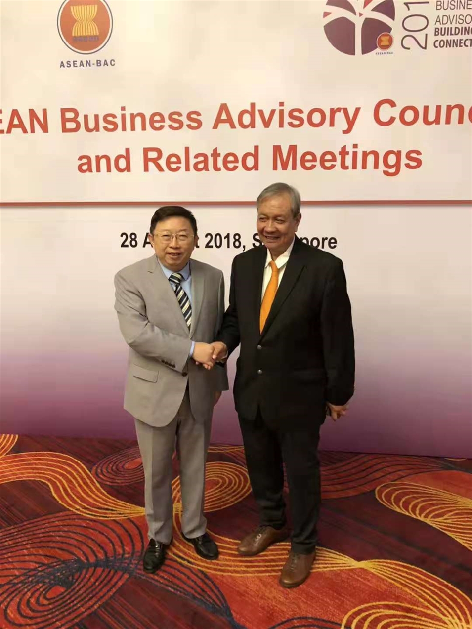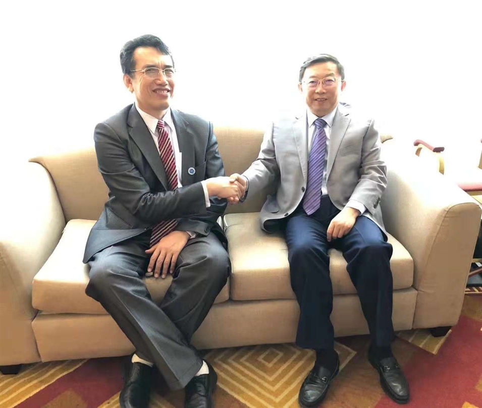 2018年9月,中國(guó)—東盟商務(wù)理事會(huì)執(zhí)行理事長(zhǎng)許寧寧與老撾科技部副部長(zhǎng)交談。