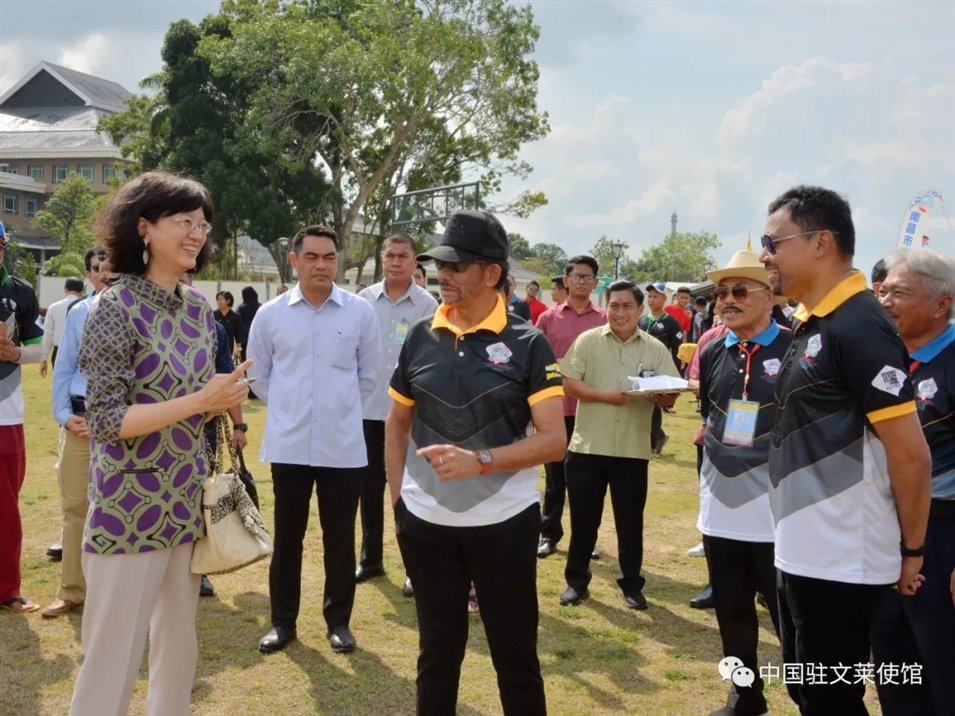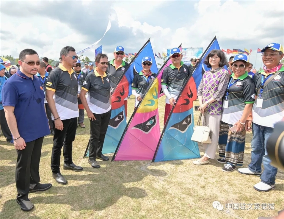 317日,于紅大使應(yīng)邀出席文萊首屆國(guó)際風(fēng)箏節(jié)開(kāi)幕式。于紅大使在開(kāi)幕式前看望中國(guó)選手,為他們加油鼓勁。于紅大使還陪同文萊蘇丹、王儲(chǔ)等王室成員和中國(guó)選手交流。